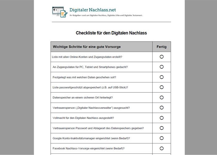 Digitaler Nachlass Formular gratis downloaden (PDF)