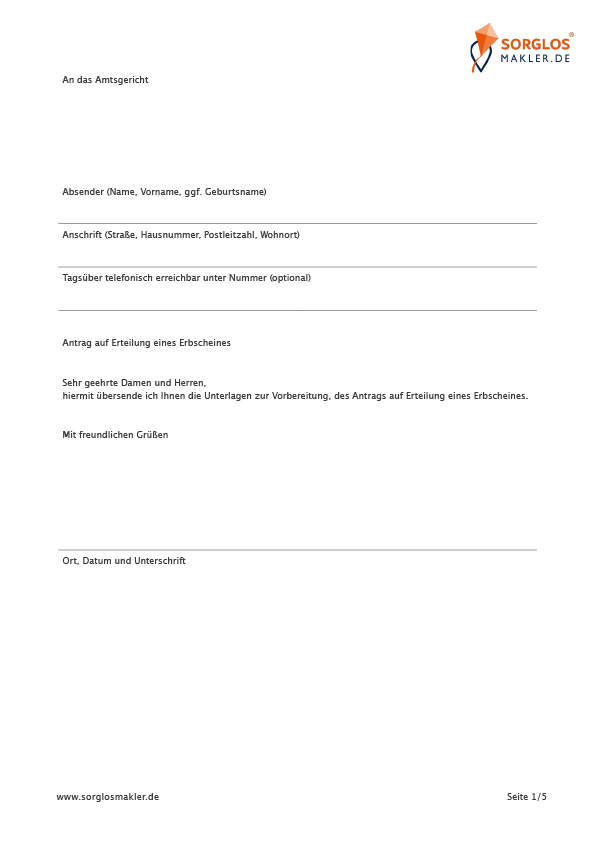 Beantragung Erbschein Formular gratis downloaden (PDF)