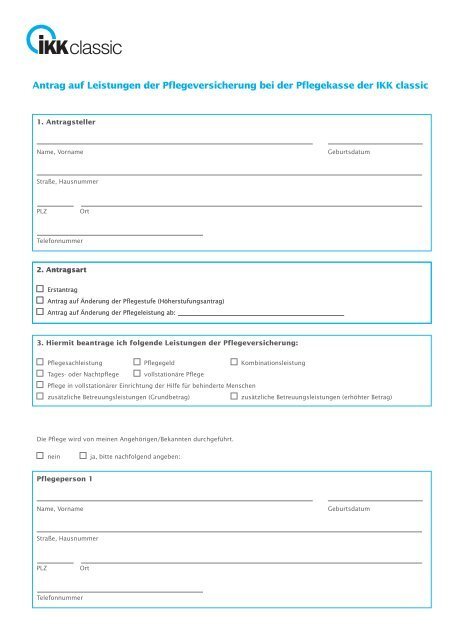 Kostenloses IKK Classic Formular Verhinderungspflege zum Download. Ideal für Krankheit oder Erholungsurlaub der Pflegeperson. Einfach ausfüllen und schnell Unterstützung sichern.