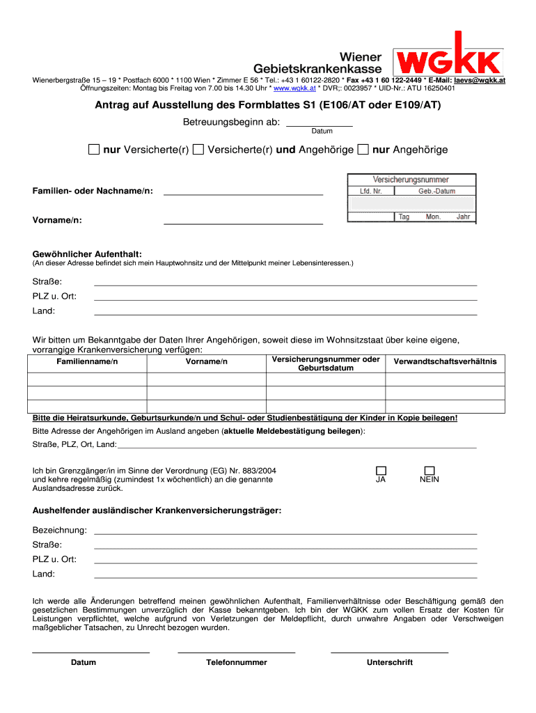 Kostenloser Download des S1-Formulars für die Krankenversicherung in der EU. Einfaches Anmelden für Sie und Ihre Familie bei Aufenthalt in einem EU-Land.
